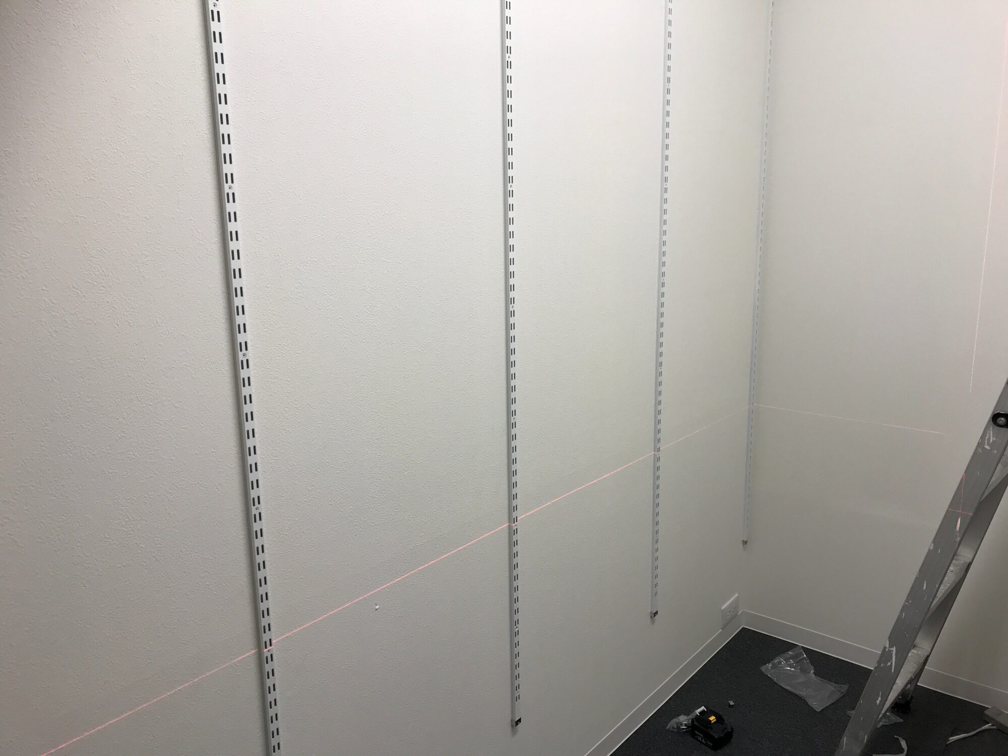 追加にて棚柱工事を行いました。 すでに下地がある状態でしたので、埋込ではなく露出での設置となりました。 愛北インテリアでは、幅広く内装工事始め、オーダー家具やリフォーム工事も承ります。