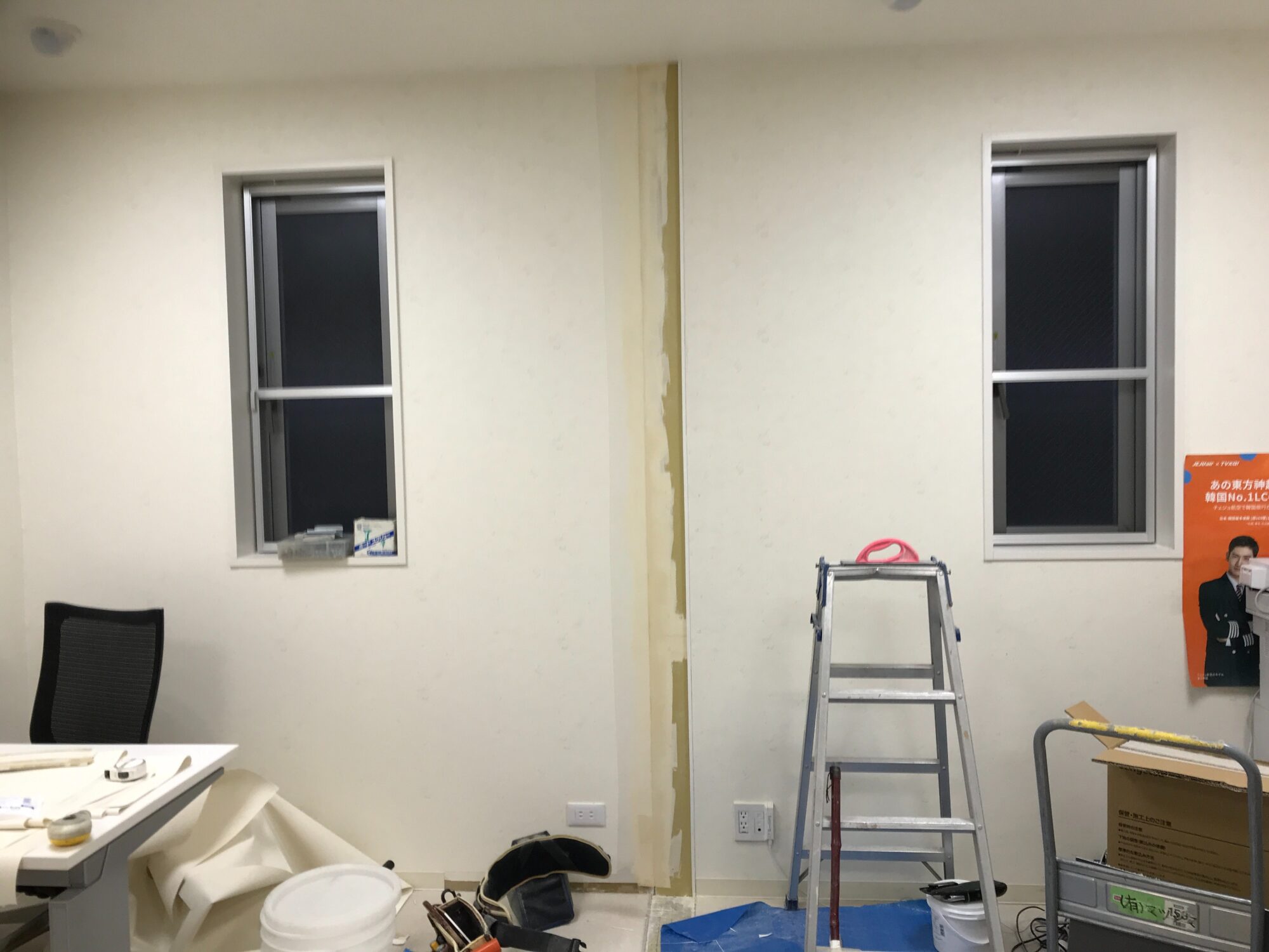 名古屋市中区にて間仕切り解体工事を行いました。 お部屋が手狭になってために解体してほしいとのご依頼でした。 休日の限られた時間内での作業でしたが、無事完了しました。 間仕切り解体・ボード復旧・クロス貼り・カーペットタイル貼り・巾木貼り